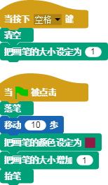 1.设置画笔参数行走留下路径,改变颜色和大小
